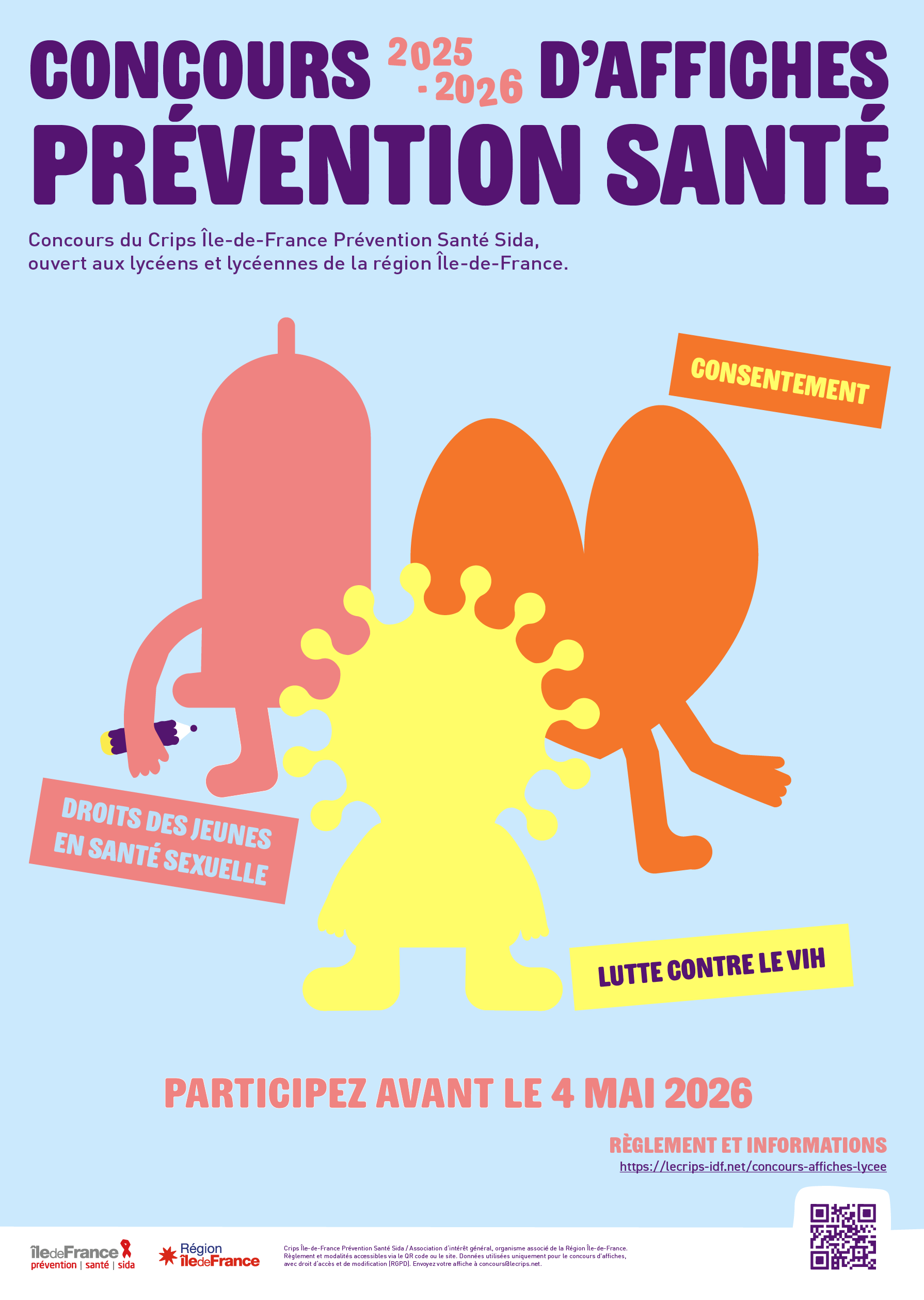 Créé par le Crips Île-de-France avec le soutien de la Région ïle-de-France, ce concours invite les lycéennes et lycéens franciliens à devenir acteurs de la prévention en imaginant une affiche positive et percutante sur la vie affective, relationnelle et sexuelle.