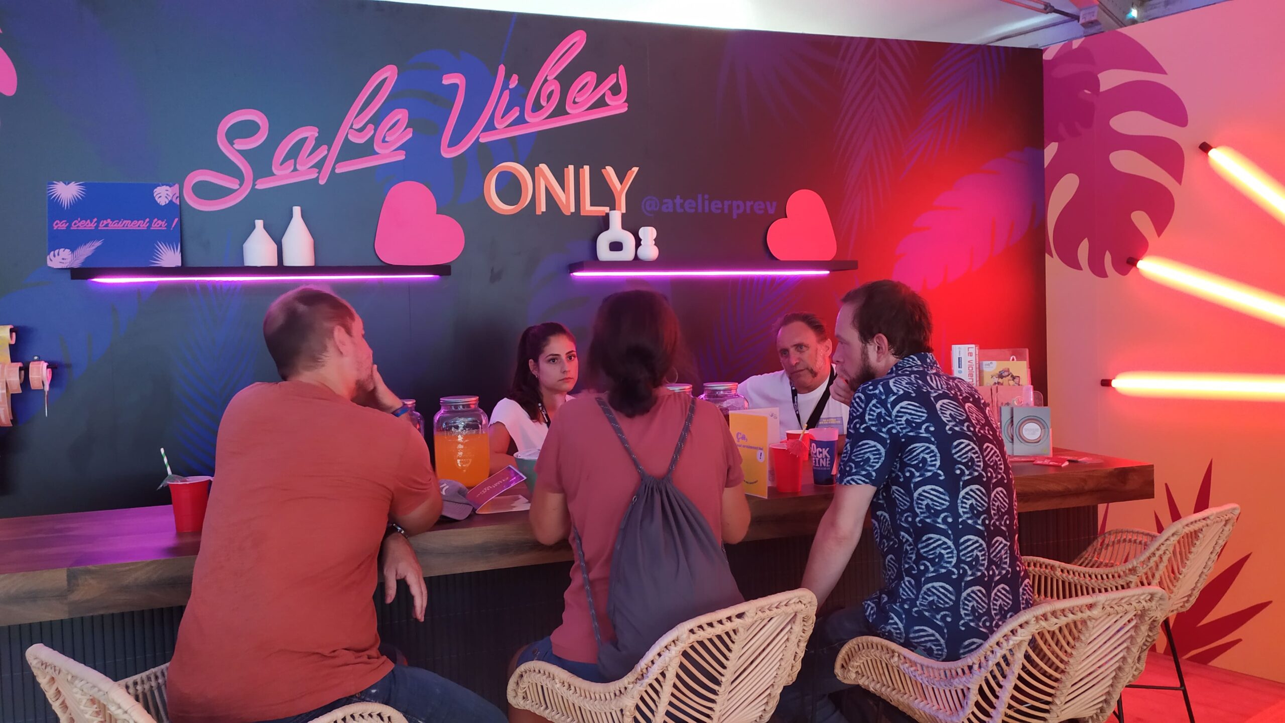 C’est dans cette folle ambiance que nous avons accueilli les festivaliers au bar “Safe Vibes Only” et éveillé leur curiosité grâce à notre carte de cocktails détournés. Une fois la surprise passée, ils ont pu découvrir nos animations de prévention sur le consentement en milieu festif et sur la psychologie positive.