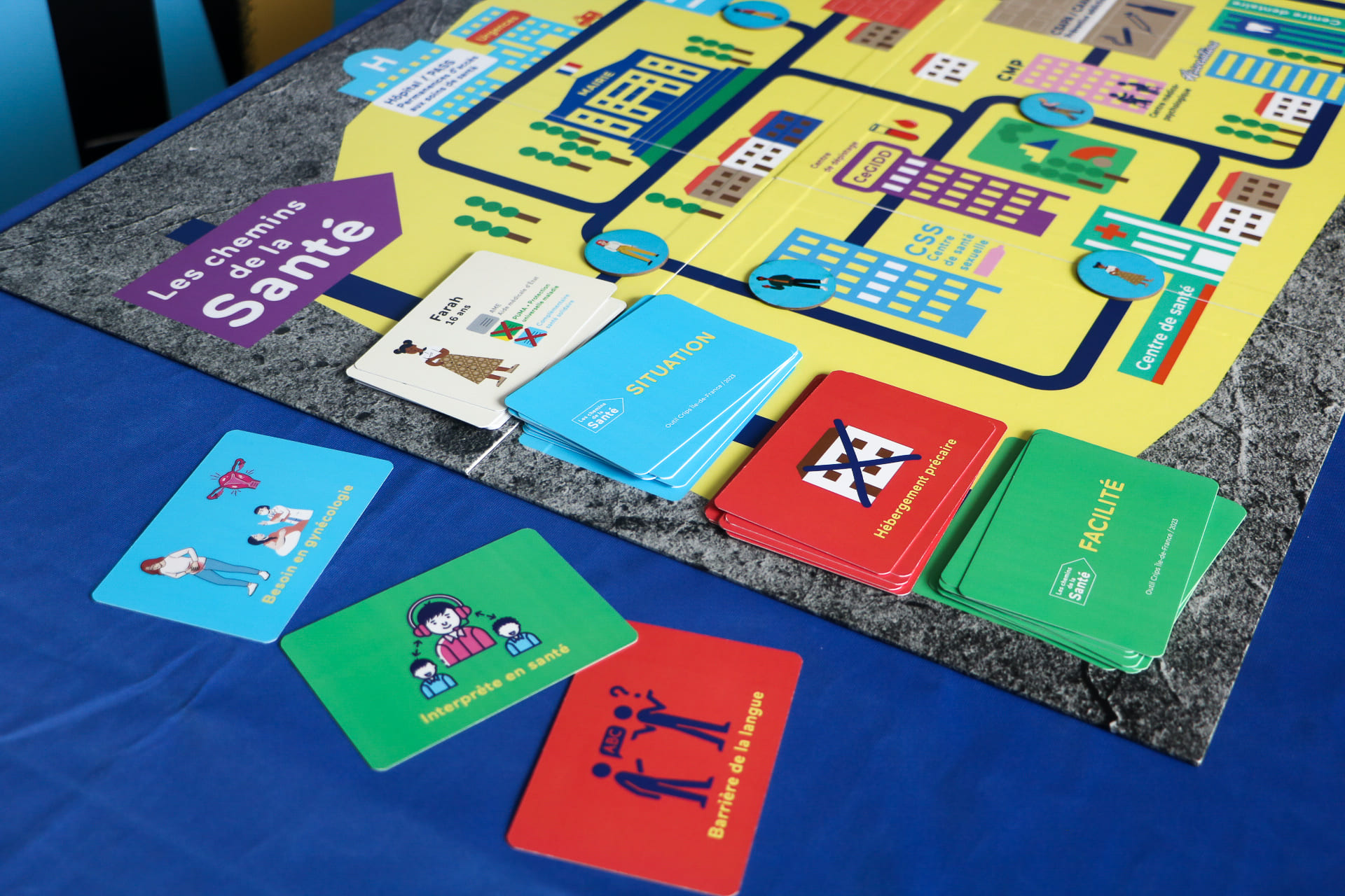 Il prend la forme d’un jeu de plateau et permet de discuter sur l’accès aux soins en santé et en santé sexuelle, afin d’identifier les structures de santé vers lesquelles se diriger en fonction d’une situation de santé ; de discuter de manière globale des différents obstacles à l’accès aux soins et des solutions qui peuvent exister.  Le jeu comporte un plateau accompagné de 4 catégories de cartes : profil, situation, obstacle et facilité.