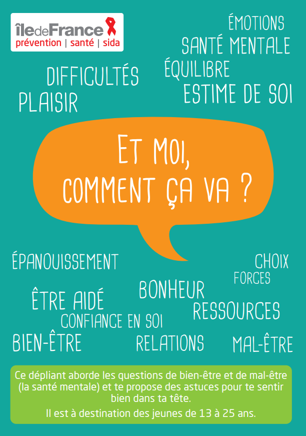 Brochure qui aborde les questions de bien-être et de mal-être (la santé mentale) et propose des astuces pour se sentir bien. il est à destination des jeunes de 13 à 25 ans.