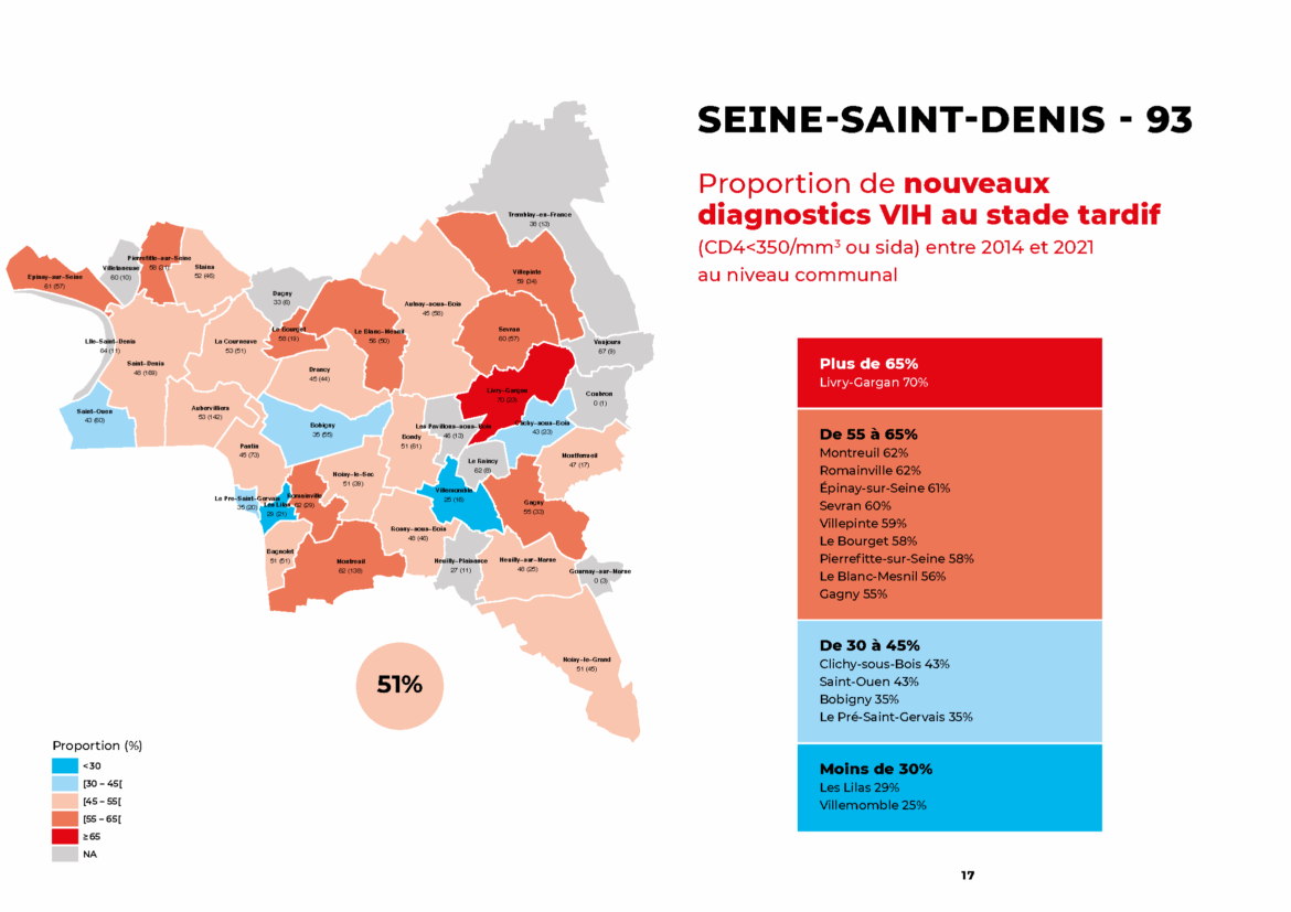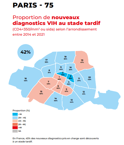 - 40% du nombre total de personnes ignorant leur séropositivité en France, résident en région Île-de-France.