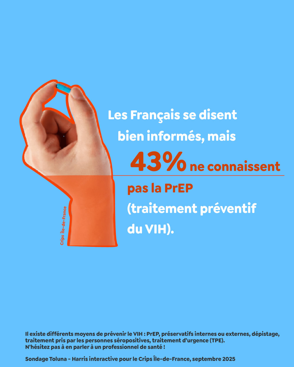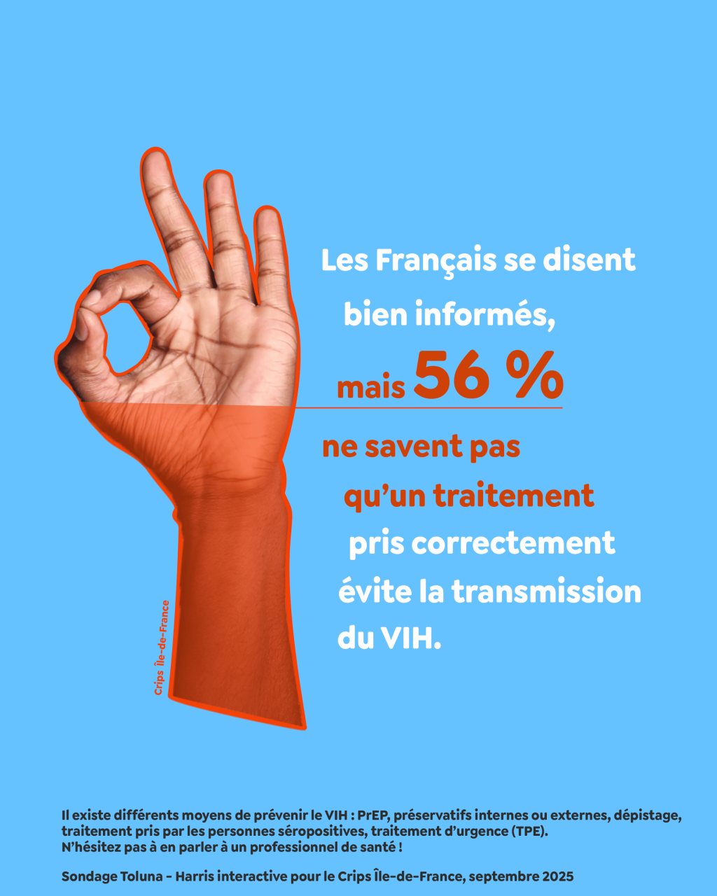 • Basée sur le sondage « Les Français et le VIH » réalisée par Toluna – Harris interactive, pour le Crips Île-de-France, en septembre 2025