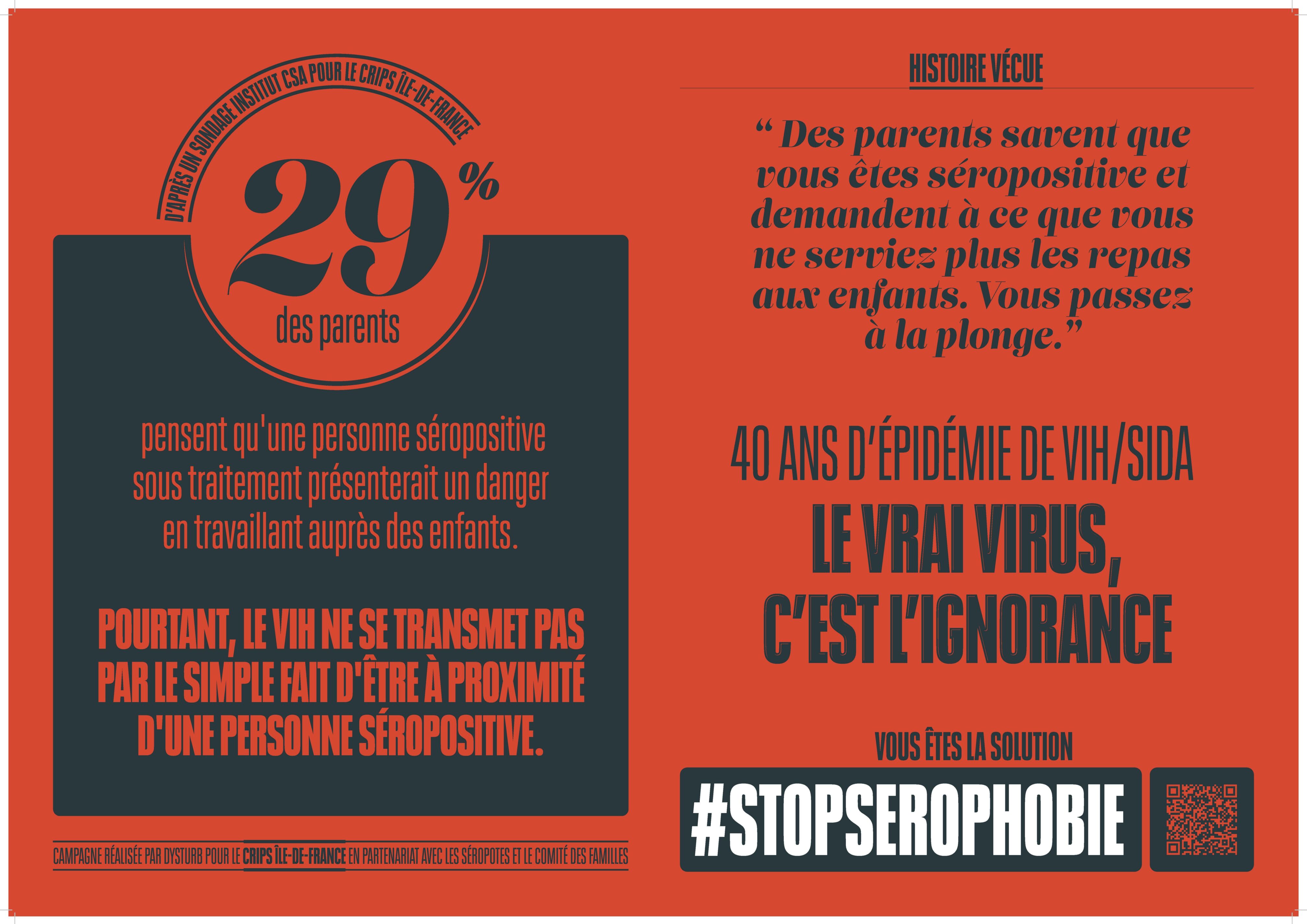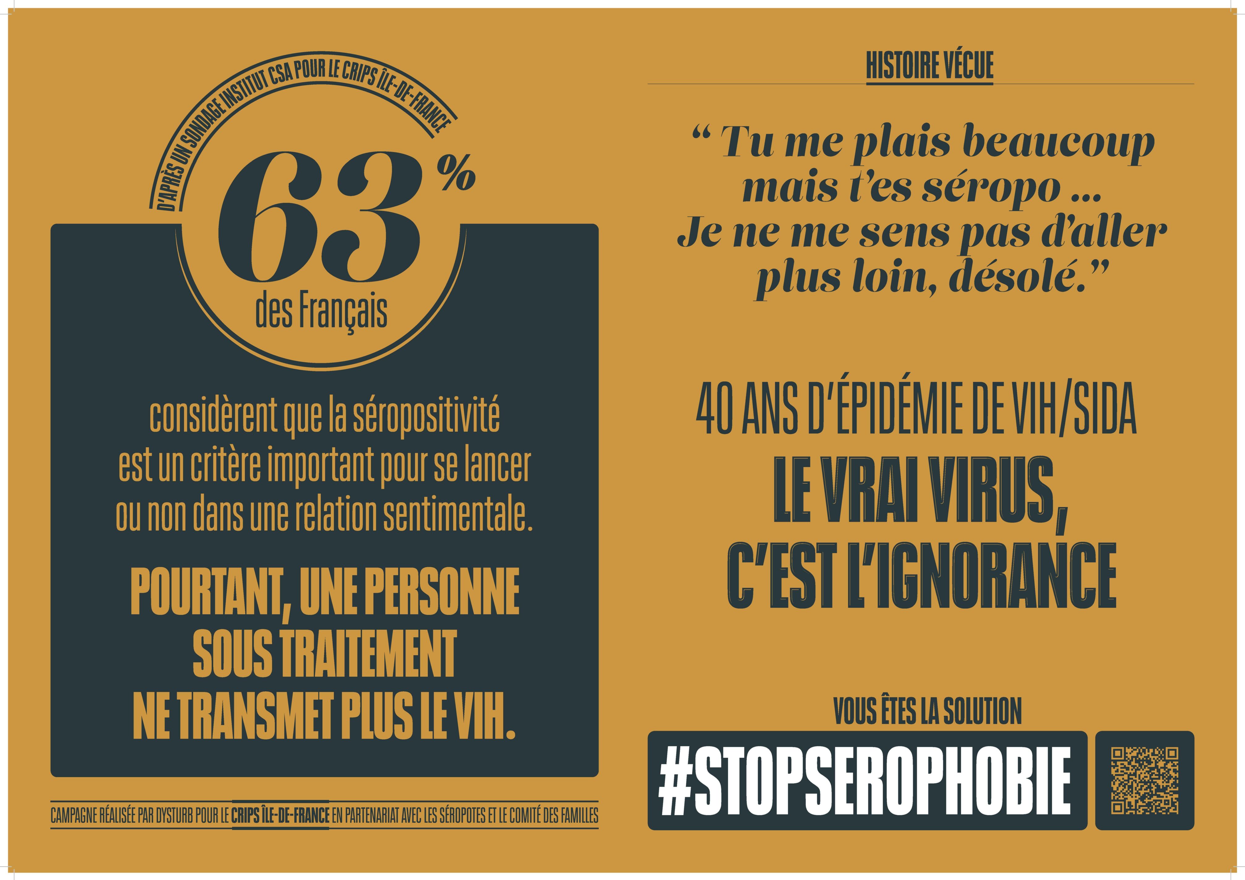 L’objectif de la campagne #Stopserophobie est double : d’une part documenter le niveau d’information, les opinions et les préjugés des français sur les personnes vivant avec le VIH ; d’autre part, interpeller chacun et chacune sur le rôle individuel et impactant que nous pouvons jouer dans cette lutte.
